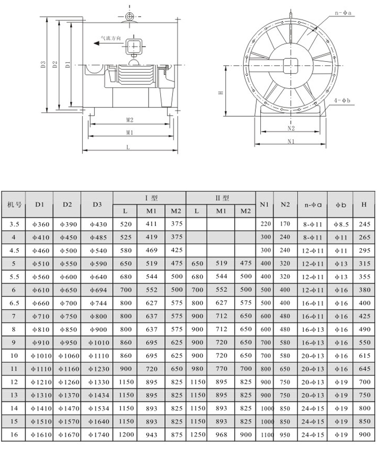 ??6、安装方便,占地较离心风机少:该风机基本形式为轴流式风机或混流式风机,可直接与风管连接或壁式安装,安装形式可采用垂直式或水平式,很大程度上节省了占地面积。