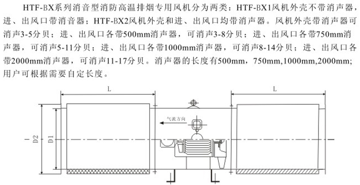 HTF-BX2系列消音型消防高温排烟轴流通风机安装尺寸表