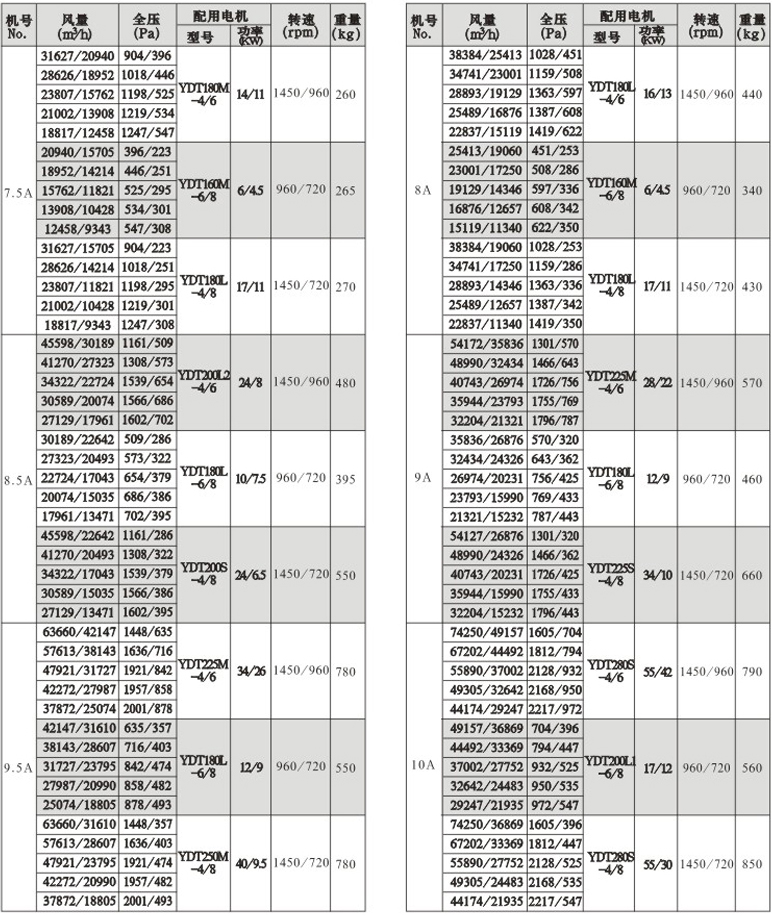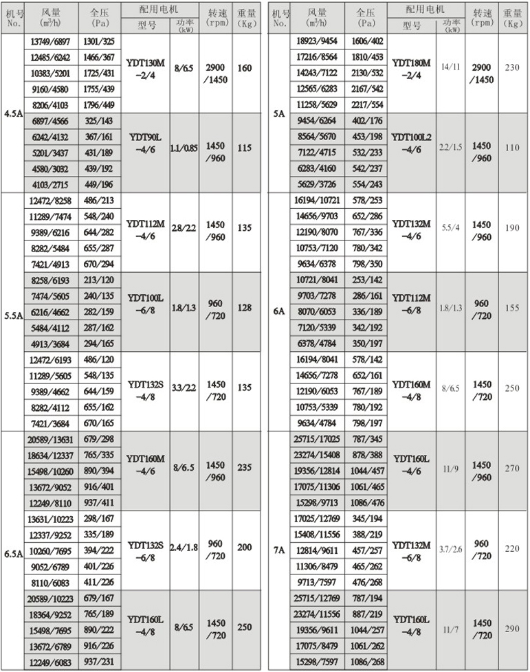 PYHL-14A系列双速混流排烟风机性能参数表(1)