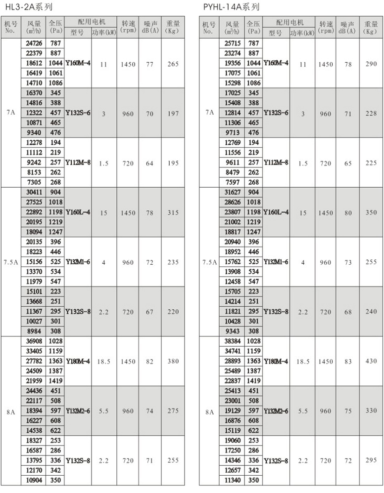 HL3-2A系列混流风机,PYHL-14A系列混流排烟风机性能参数表(8)