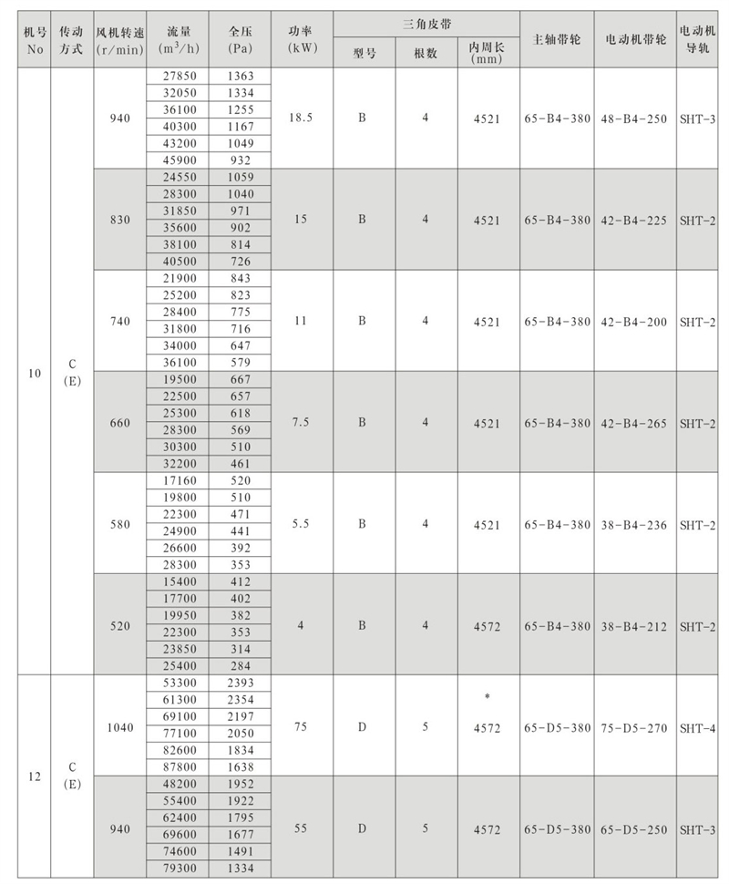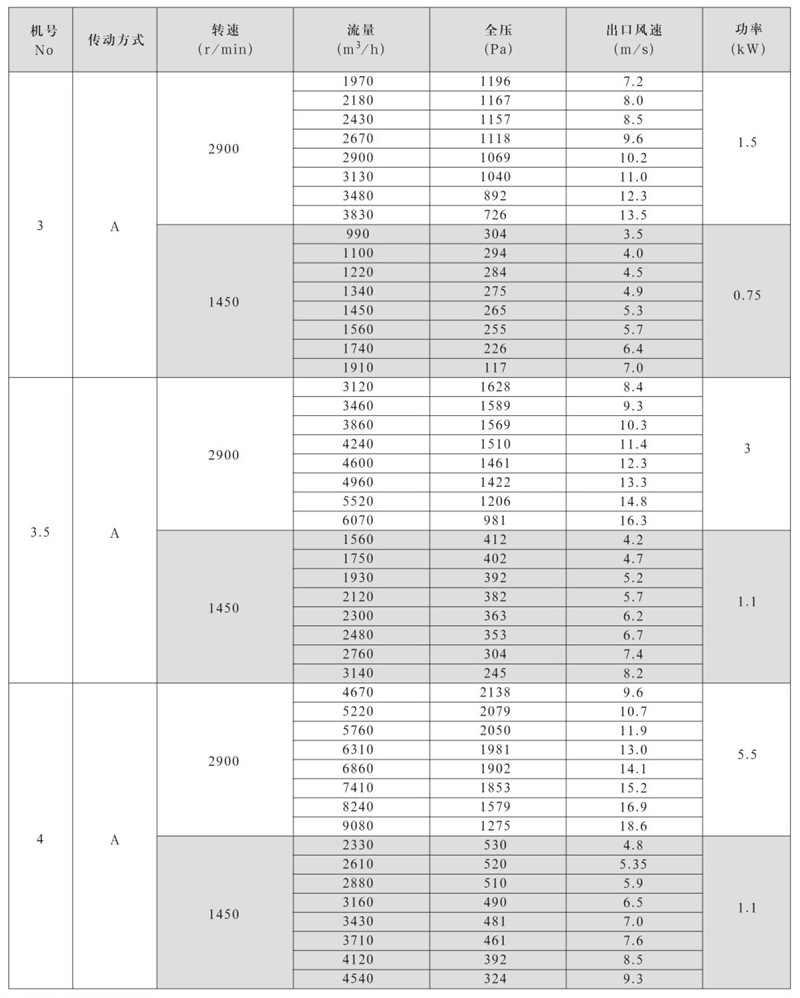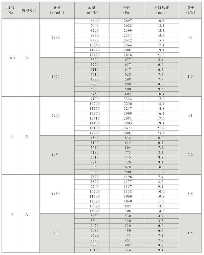 ??离心通风机用作一般通风换气,作为一般工厂及建筑物的室内通风换气。既可用作输入气体,也可用作输出气体。输送的气体应为空气和其他不自燃的、对人体无害的、对钢材料无腐蚀性的气体。气体内不许含有粘性物质,所含尘土及硬质颗粒物不大于150mg/m3,气体温度不得超过80℃。其中对一定浓度的腐蚀性气体的输送可以用玻璃钢为材料,生产防腐风机。同时对输送易爆气体的防爆离心风机,叶轮可用铝合金加工,以防在运转中引起火花,电机配用隔爆型电机,其性能参数均与普通风机相同。离心通风机可制成右旋和左旋两种型式。从电机一侧正视,叶轮顺时针旋转,称为右旋风机,以“右”表示,叶轮逆时针旋转,称为左旋风机,以“左”表示。风机的出口位置,以机壳的出风口角度表示。
