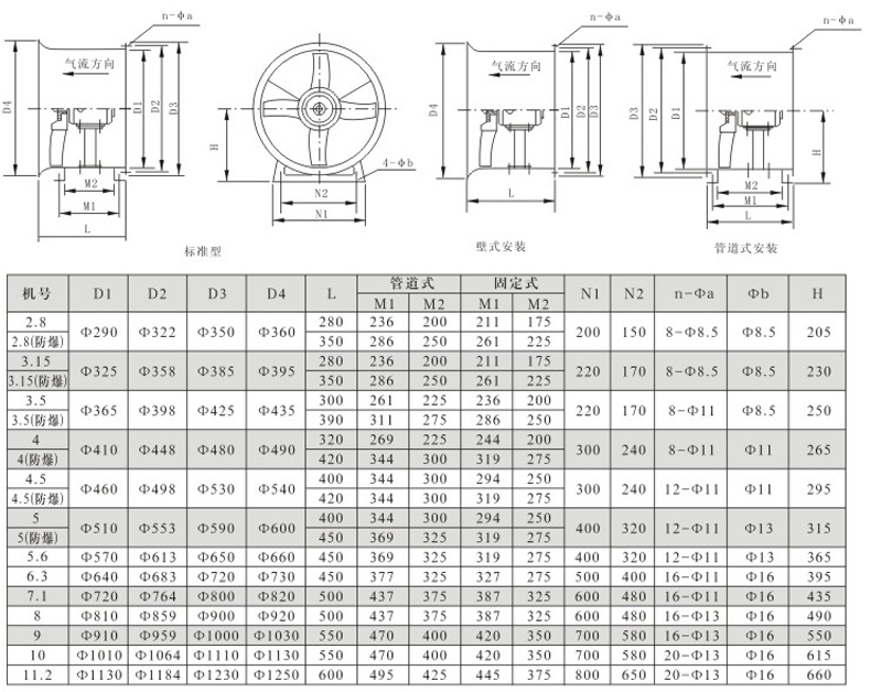 T35-11(T40-11)系列轴流风机外形及安装尺寸(mm)