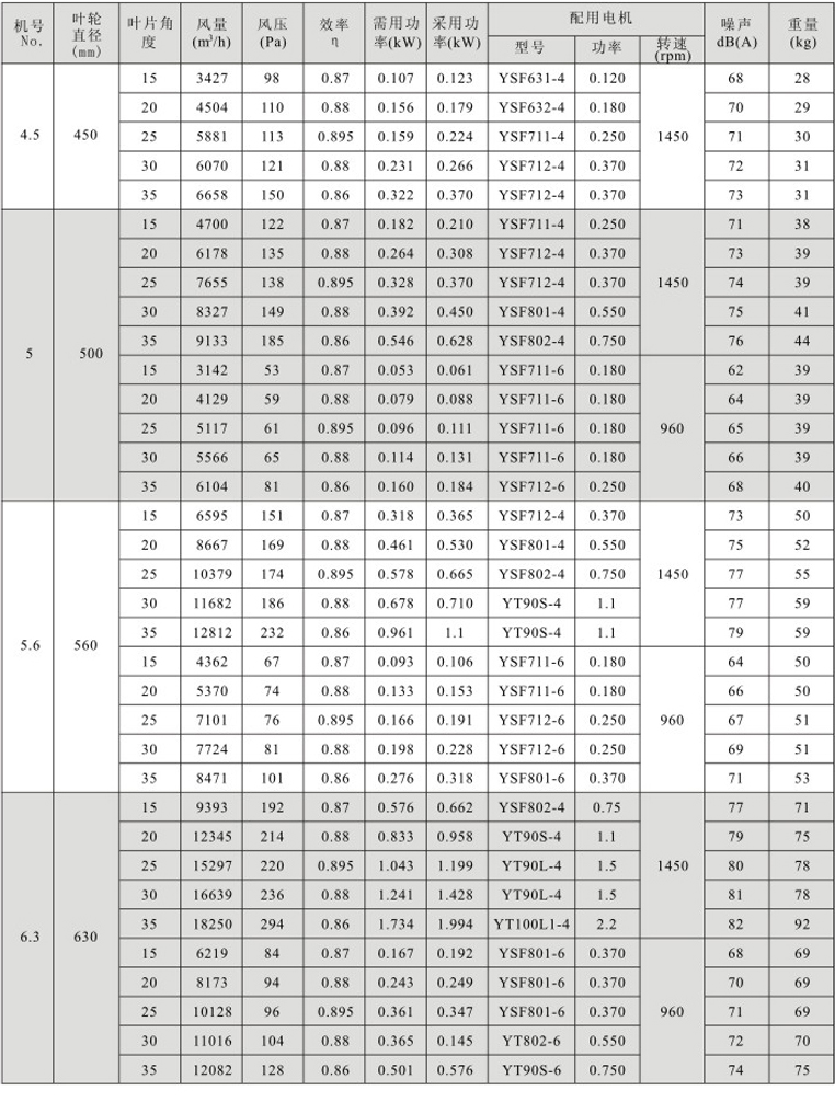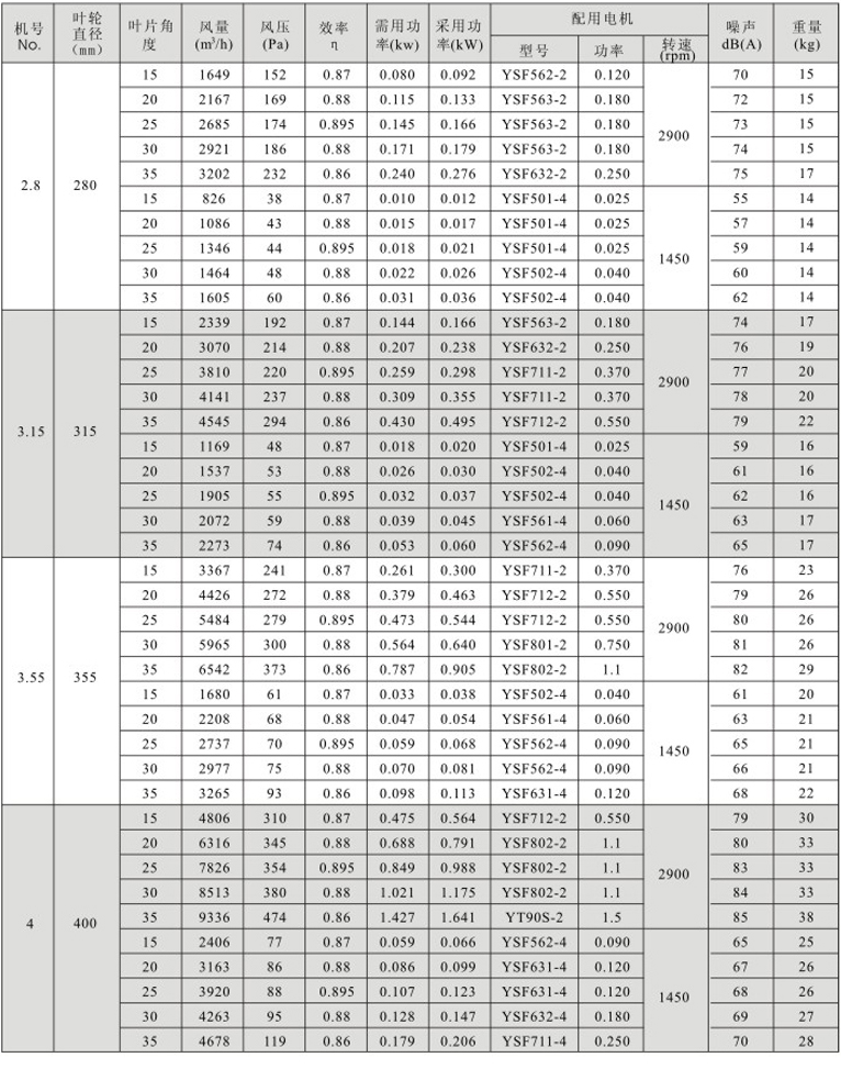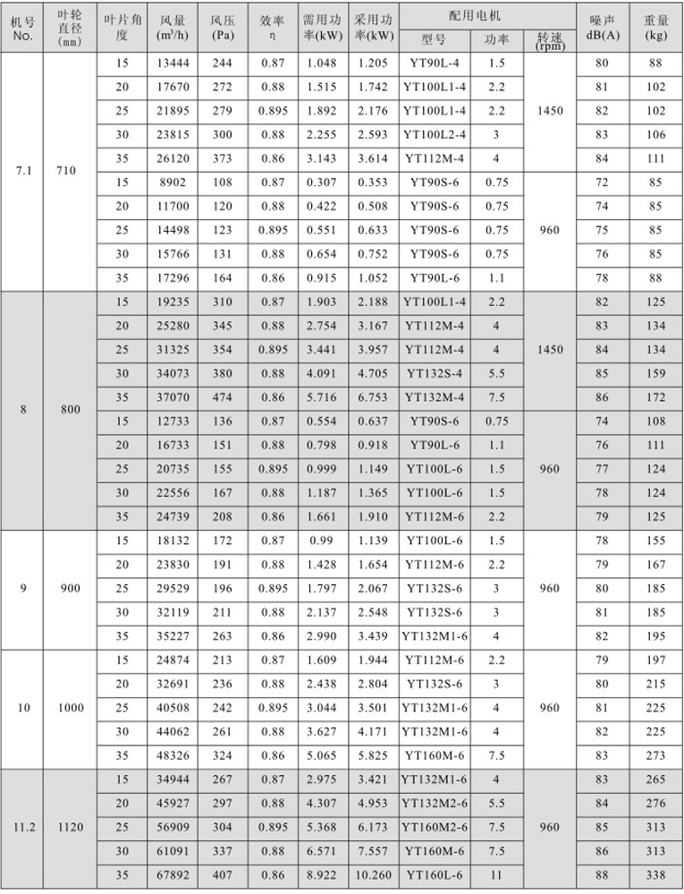 T35-11(T40-11)系列轴流风机性能参数表(1)