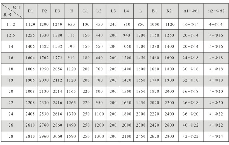 风机直径:Φ1250~2800mm,
