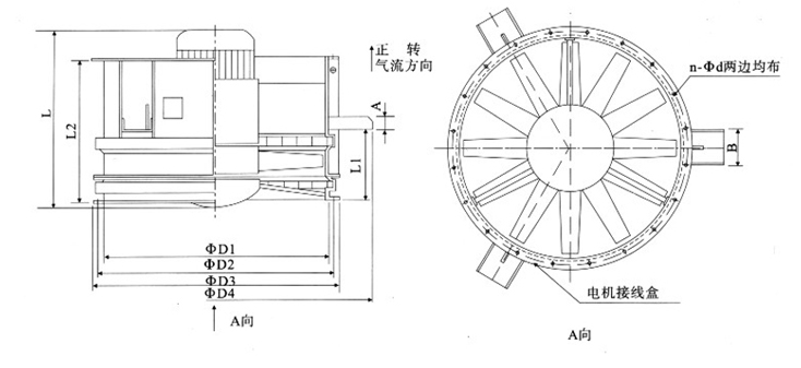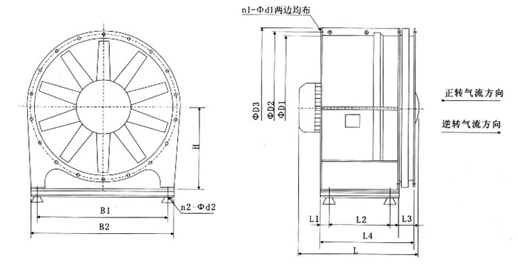 DTF(R)系列可逆转隧道轴流风机外形尺寸