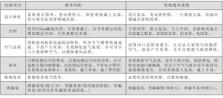 传统的地下车库通风均采用在库内布置低速风管送排系统,其缺点是:风管断面尺寸较大。气体往往会聚集在远离空气气流的死角处;车库净高普通较低,采用低速风管有压迫感;安装工作量大,投资较高:运行费用高。同时有的建筑由于其本身特点风管根本无法安装。