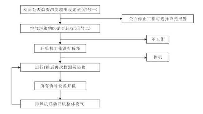 3、当同一台在工作了设定的稀释时间后,C0还是超标,程序有理由认为整个车库已经饱和,必须开启整个系统换气。